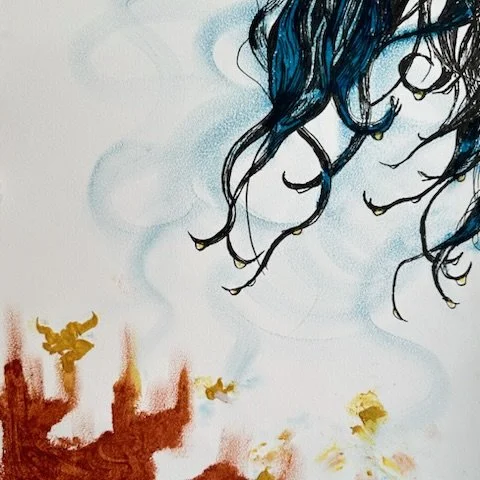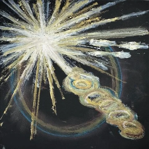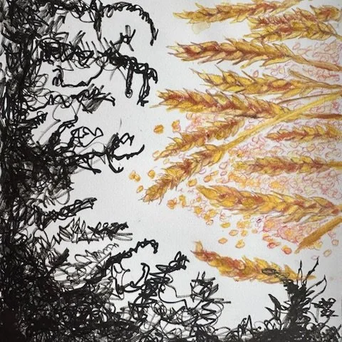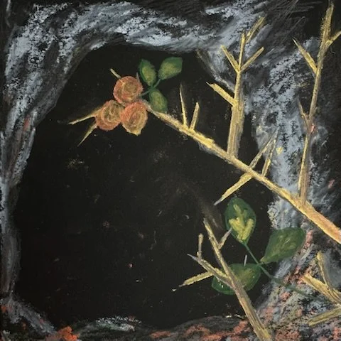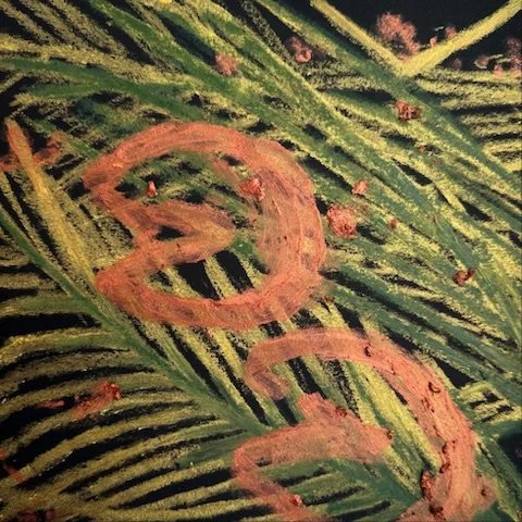 media: oil stick, conte crayon, watercolor pencil, charcoal, pen (and wine)